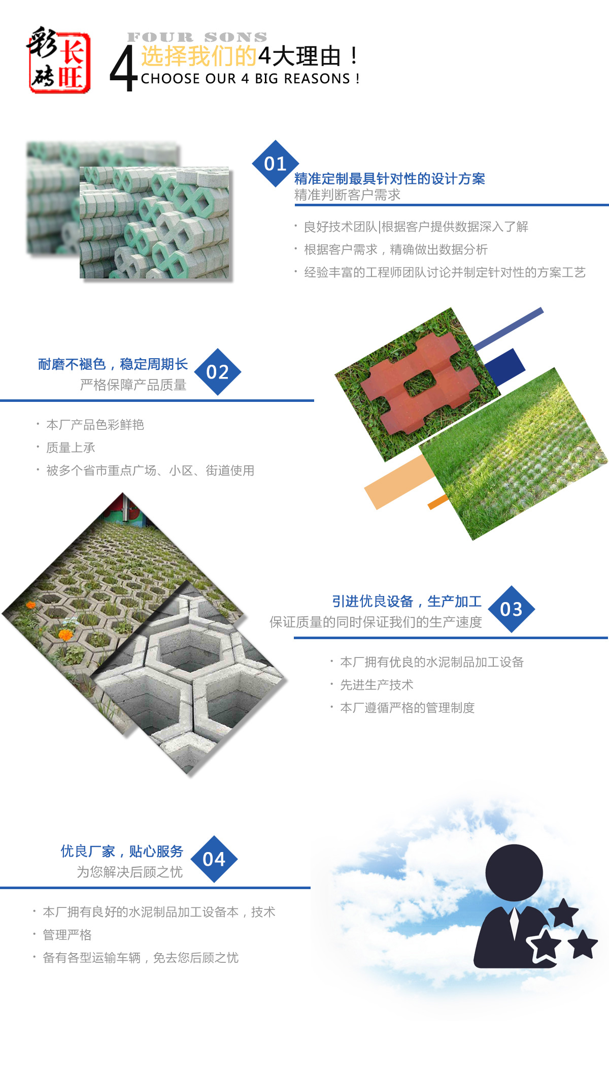 168网(原宝坻富强水泥制品厂)现坐落于河北省唐山市玉田县,地处唐山中心三角地带,交通很便利。建厂1998年,占地面积33000多平方米,专注生产各种高强度彩色釉面砖、护坡砖、广场砖、西班牙砖、草坪砖、S砖、九格砖、六角砖、面包砖、新型路沿石、大小侧石、各种下水管道等产品。本厂拥有优…